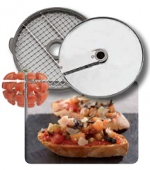 Диск служит для нарезки кубиками картофеля, репы, моркови, цукини, свеклы и других овощей.