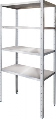 В стандартной комплектации стеллаж включает в себя 4 стойки, 4 полки, комплект метизов и усиливающих уголков.