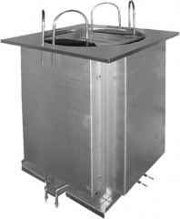 Конструкция сварная, бескаркасная. Внутри элеватора установлена платформа с пружинным механизмом, которая поднимается автоматически. По краям отверстия расположены прутковые ограничители, препятствующие падению тарелок. Камера рассчитана на единовременную загрузку 45 тарелок диаметром от 160 до 300 мм. Тарелки укладываются на платформу, поддерживаемую снизу пружиной. Подогрев тарелок осуществляется электрическими ТЭНами общей мощностью 0,3 кВт. Температура рабочей камеры от +30 до +60°С.