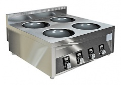 Индукционная плита Техно-ТТ ИПК-410114 с 2 плоскими конфорками и 2 конфорками WOK предназначена для приготовления различных блюд в наплитной посуде на предприятиях общественного питания и торговли.